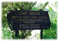 Battle Point County Park is located in southwestern Todd County along the eastern shore of Lake Osakis. The park is approx. 10 acres in size and forms a peninsula into Lake Osakis. According to the 1983 Todd County Park and Recreation Management Plan in the pre-settlement years Sioux and Chippewa Indians occupied the area and many battles were fought between them. The most recently recorded battle describes a confrontation in 1866 resulting in many casualties at the water’s edge of Lake Osakis.